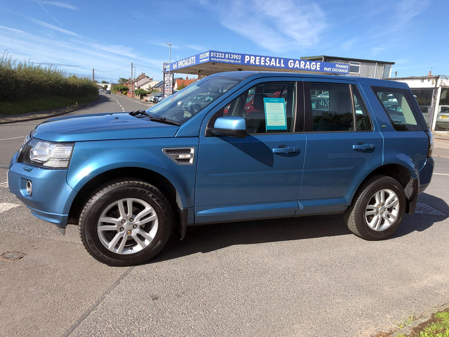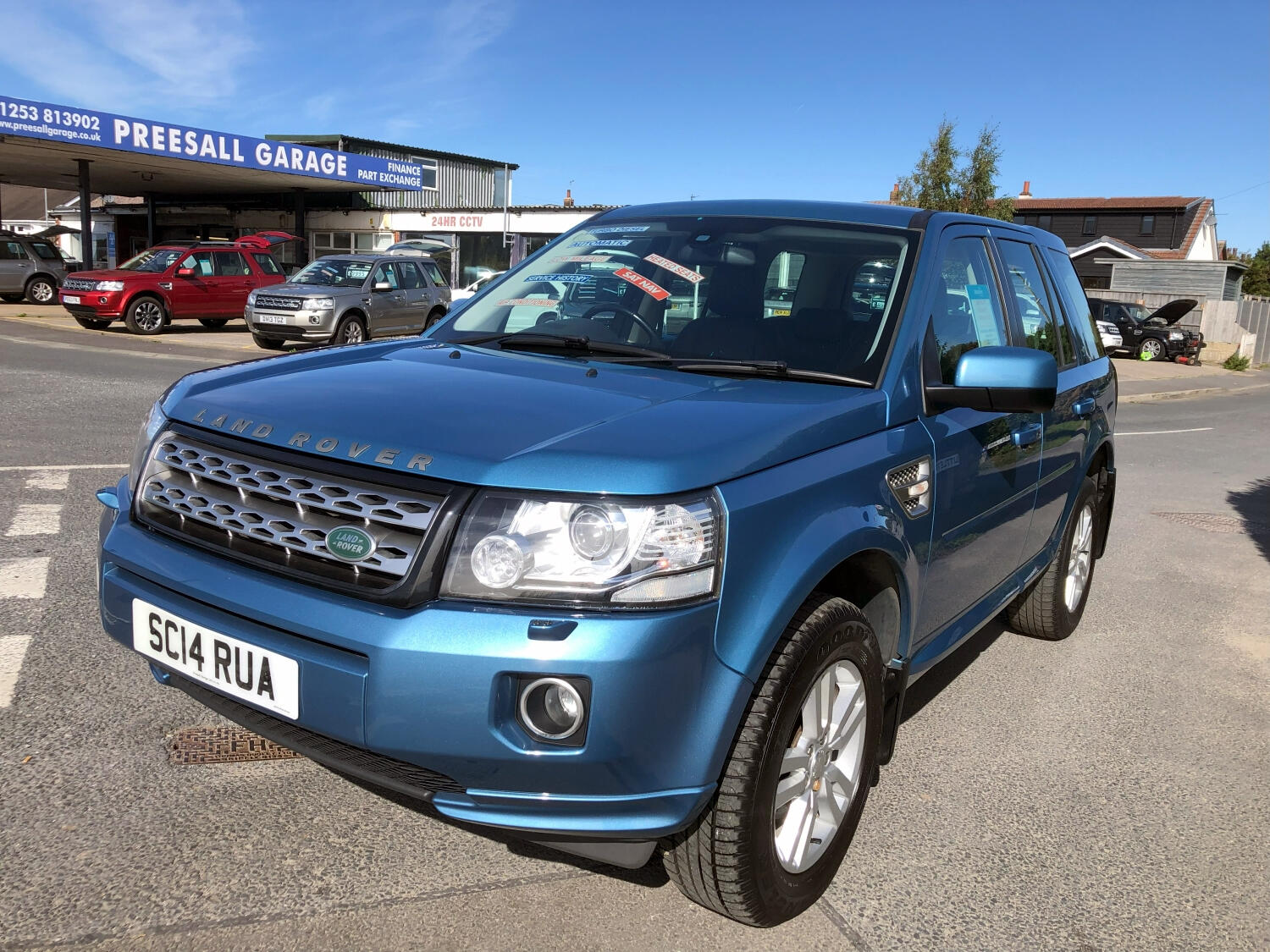 2014 LAND ROVER FREELANDER 2 2.2 TD4 XS TURBO DIESEL AUTOMATIC 4X4 ESTATE FINISHED IN METALLIC MAURITIUS BLUE, 76000 MILES WITH LAND ROVER SERVICE HISTORY. SUPERB CONDITION THROUGHOUT, SPEC INCLUDES: BLACK LEATHER UPHOLSTERY, HEATED FRONT SEATS, AIR CONDITIONING, TOUCH SCREEN MEDIA CENTRE WITH SAT NAV, DAB RADIO & BLUETOOTH CONNECTIVITY, CLIMATE CONTROL, ALLOY WHEELS, ELECTRIC SUNROOF, FIXED REAR SUNROOF AND MORE. PART EXCHANGE WELCOME. FINANCE ARRANGED. THIS 2014 LAND ROVER FREELANDER 2 2.2 TD4 XS TURBO DIESEL AUTOMATIC 4X4 WILL COME WITH: 12 MONTHS MOT (WITH NO ADVISORIES). FULLY SERVICED IN OUR OWN WORKSHOPS WHICH ARE EQUIPPED WITH AUTOLOGIC DEALER LEVEL DIAGNOSTICS. OUR OWN NO QUIBBLE WARRANTY. FULLY VALETED BY US. 2 KEYS.